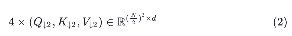 事实上,对下采样的 tokens 进行 attention 这件事并不新鲜。在视觉 Transformer 中,[11][12]曾提出对 Key-Value 对进行下采样以降低计算成本。最近关于无训练扩散加速的工作[13]也对稳定扩散模型应用键值下采样。但是这些工作保持了 Query 的数量。而且,这些下采样度量通常涉及减小张量大小,这可能会导致信息丢失。