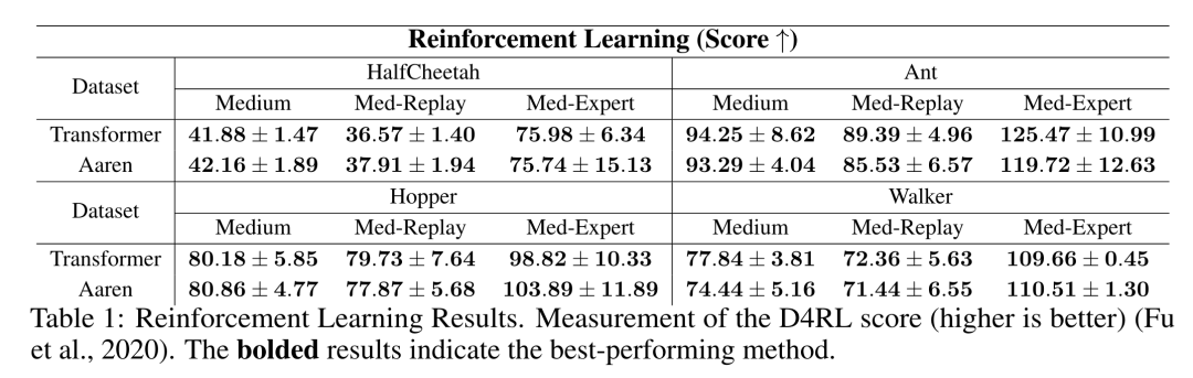 作者首先比较了 Aaren 和 Transformer 在强化学习方面的表现。强化学习在机器人、推荐引擎和交通控制等交互式环境中很受欢迎。