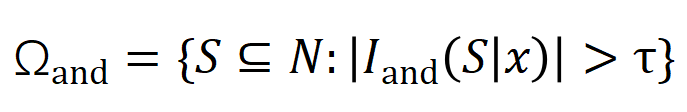 让我们考虑一个深度神经网络 和一个输入样本 , 它包含 个输入变量,我们用集合 表示这些输入变量的全集。令 表示 DNN 在样本 上的一个标量输出。对于一个面向分类任务的神经网络, 我们可以从不同角度来定义其标量输出。例如, 对于多类别分类问题, 可以定义为 , 也可以定义为 softmax 层之前该样本真实标签所对应的标量输出。这里, 表示真实标签的分类概率。这样, 针对每个子集 , 我们可以用下面公式来定义 中所有输入变量之间 "等效与交互" 和 "等效或交互"。