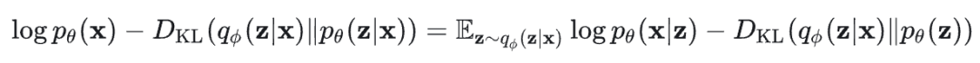等式的左边是我们学习真实分布的时候想要最大后的项, 我们要最大化真实数据的对数似然, 即最大化 , 同时最小化真实后验 和近似分布 之间的 散度。所以上面等式的负值就是损失函数: