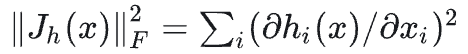 这种灵敏度是通过计算输入到编码器的Jacobian矩阵的Frobenius范数来衡量的,即