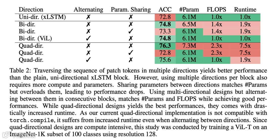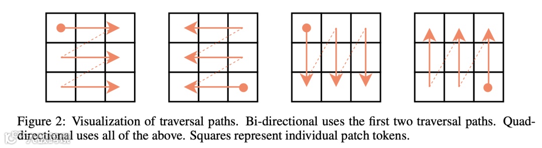 该团队还探索了四向设计,这指的是按行(两个方向)和按列(两个方向)遍历序列。双向仅按行遍历序列(两个方向)。