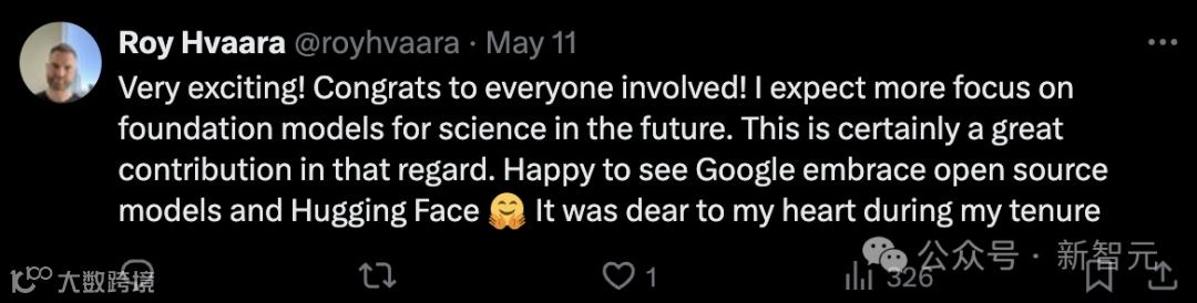 「非常高兴看到谷歌拥抱开源模型和HuggingFace社区。」