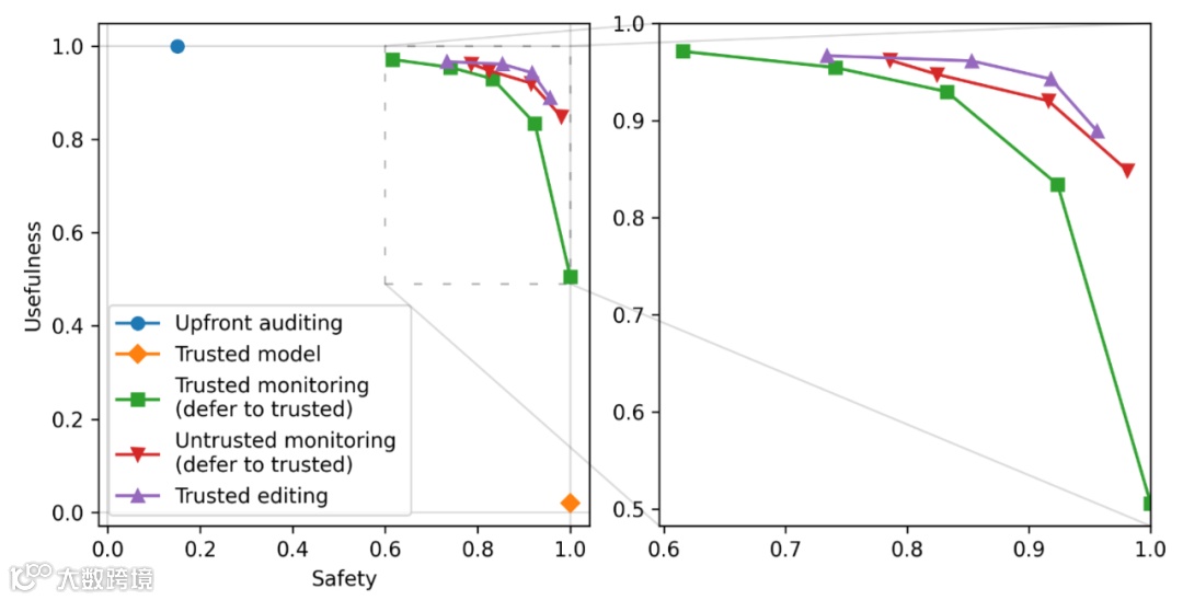 AI 控制(AI Control)是 Greenblatt et al. 提出的一套 AI 安全范式 [8] ,近来在 AGI 安全领域获得了不少关注。其主要特征是假定模型具有未对齐、非安全的倾向,并设计部署阶段的 “工业流程” 使不同能力、不同安全系数的模型互相辅助、互相监督,以在一定的安全性概率保障下有效利用非安全的模型。