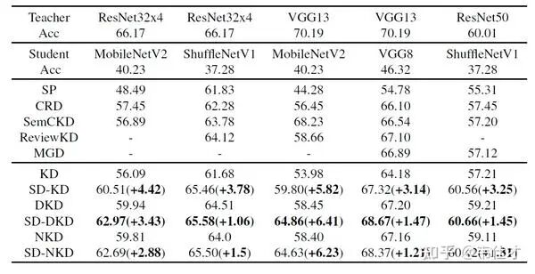 在CIFAR100,ImageNet上,对已有的KD, DKD, NKD,加上Scale Distillation之后,都可以带来效果的提升
