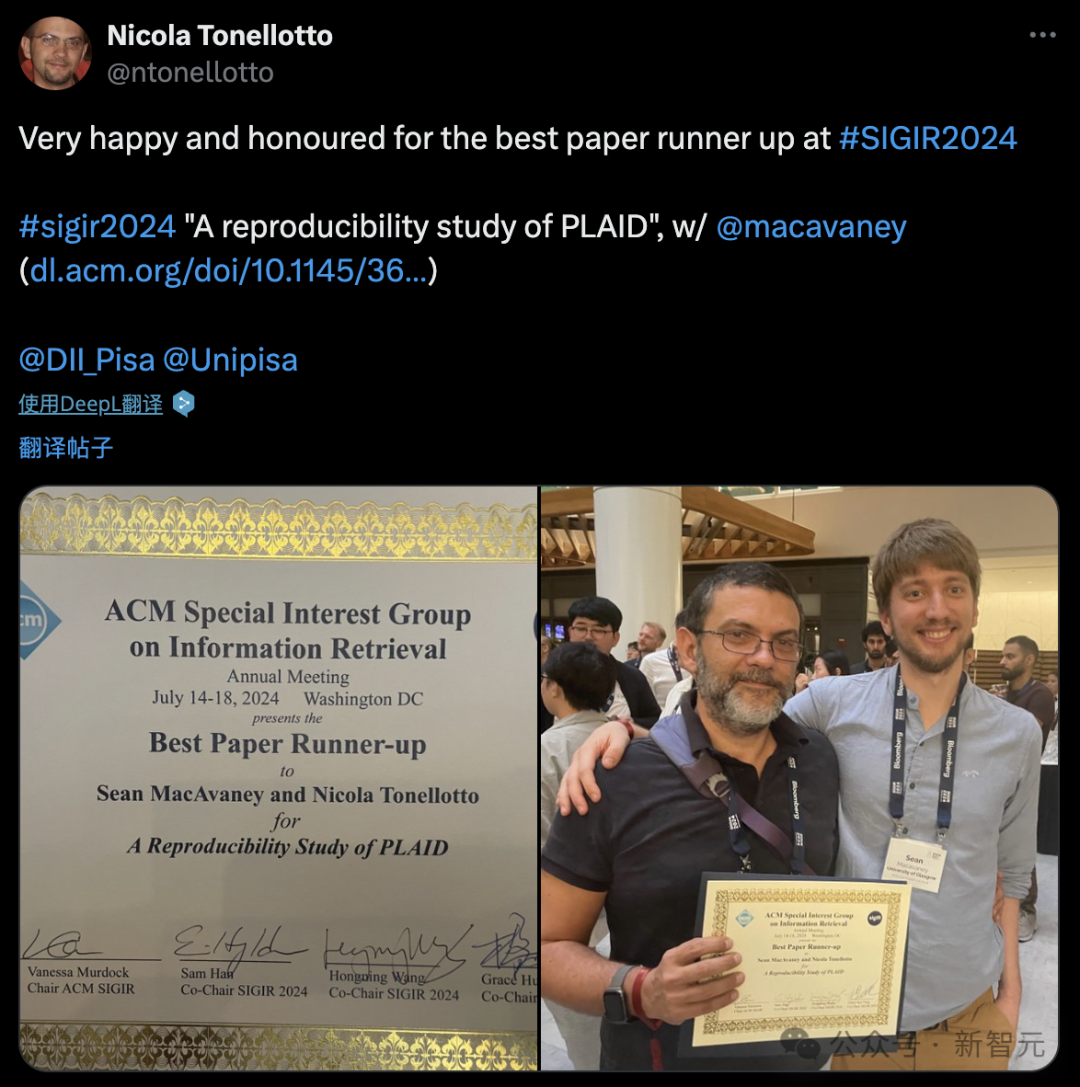 还有一篇来自格拉斯哥大学和比萨大学的研究人员发表的A Reproducibility Study of PLAID,获得了最佳论文奖亚军。