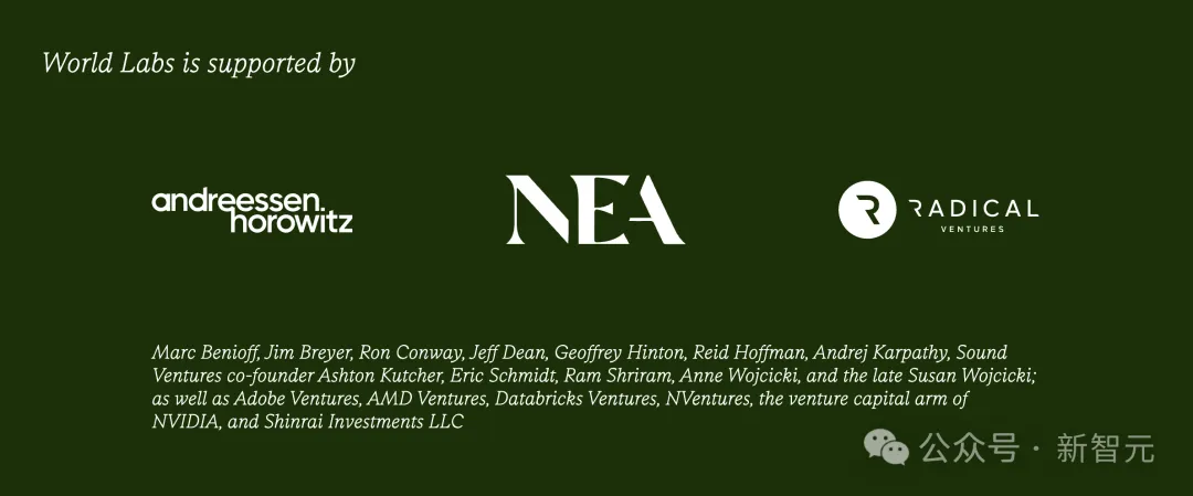 「The World Labs团队是顶尖的,我很期待看到他们将前沿研究应用到3D AI中!」