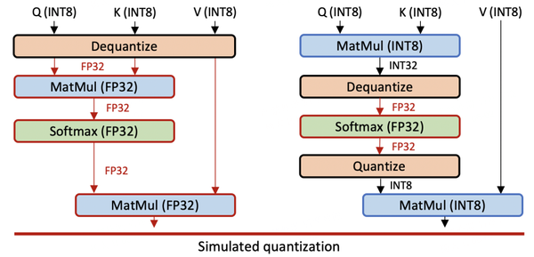 在LLMs中,即使应用了channel间平滑技术,token维度上仍然存在相当大的分布范围,而静态量化方法(即量化参数在运行时固定不变)在遇到超出校准集范围的输入时,往往准确性会严重下降。因此,现有的量化方案为了保证精度,普遍采用per-token的量化方案,这种在线量化引入了大量的浮点操作。而全整形GEMM量化的最大难点在于量化参数(scale和zero point)必须是浮点数。