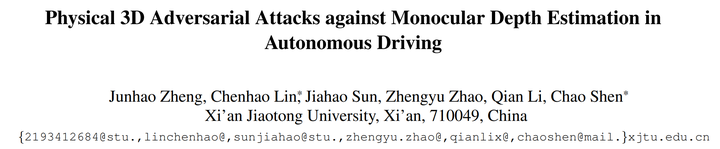 投稿人简介:郑君豪,西安交通大学网络空间安全学院博士一年级学生,导师是沈超老师,主要研究方向为自动驾驶感知安全和对抗攻击。本文介绍西安交通大学网络空间学院先智所提出的针对自动驾驶场景下单目深度估计模型的对抗攻击方法,论文被CVPR2024收录。