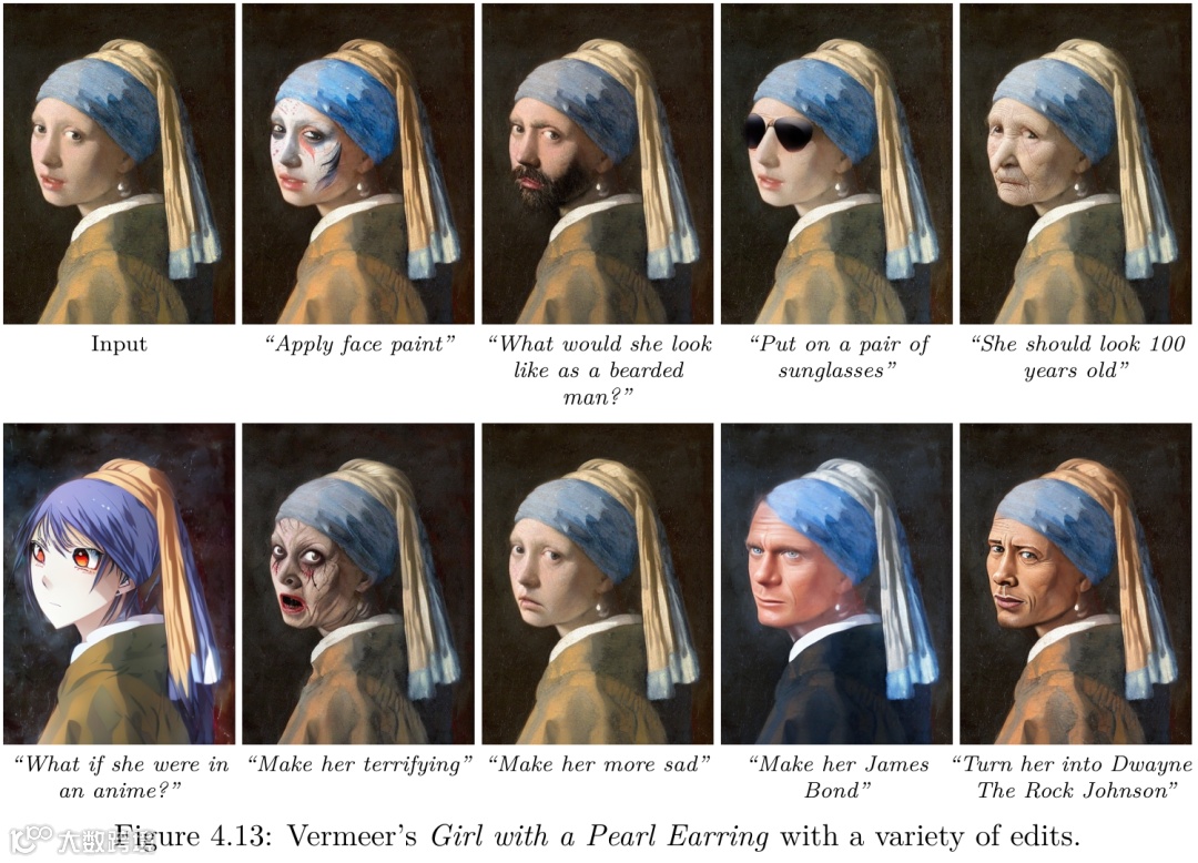 第 4 章提出了一种新技术,教生成模型遵循人类编辑指令。图 4.1 显示了模型执行图像编辑指令的示例,图 4.2 显示了在文本消息会话中使用的模拟接口。