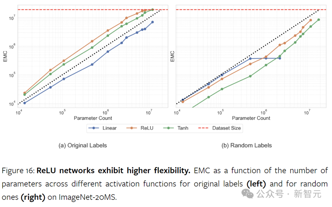 值得注意的是,MNIST(模型达到99%以上的测试准确度)产生的EMC最高,而ImageNet的EMC最低,这表明了泛化与数据拟合能力之间的关系。