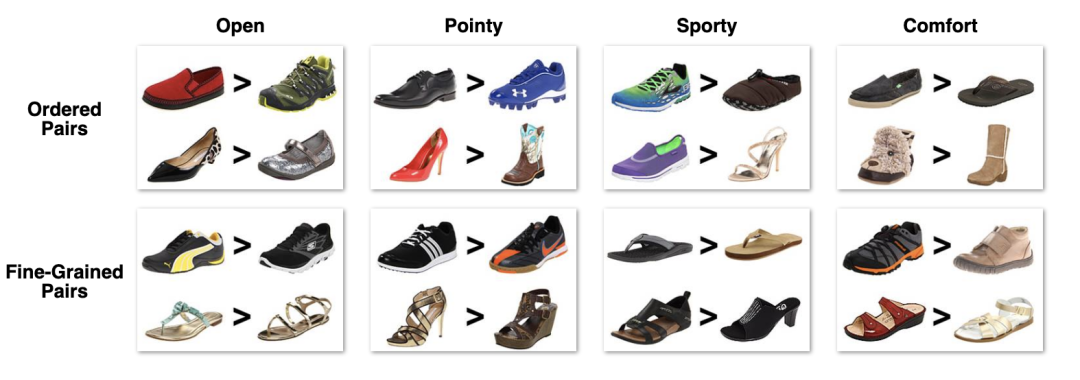 UT Zappos50K ( UT-Zap50K ) 是一个大型鞋类数据集,包含从Zappos.com收集的50,025 个目录图像。这些图像分为 4 个主要类别——鞋子、凉鞋、拖鞋和靴子——其次是功能类型和个人品牌。鞋子以白色背景为中心,并以相同方向进行拍照,以便于分析。