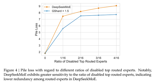 发现DeepSeekMoE的损失更大,说明DeepSeekMoE每个专家的专业化程度更好,必要性更高。