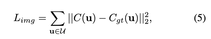 给定渲染的像素颜色 , 将其与真实像素颜色 进行比较, 以端到端的方式使用以下损失函数来优化模型:
