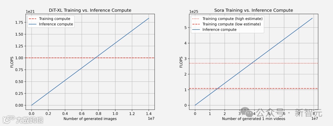 在生成15.3M到38.1M分钟视频后,推理计算将超过训练计算。