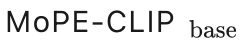 SLIP,DeCLIP,和UniCLIP结合了细粒度的监督以减少数据需求。ALIP和MCD提出了新的框架以减少图像-文本对中的噪声和错位。我们遵循CLIP使用相同的提示模板。表6展示了在11个广泛使用的基准上的结果。我们在YFCC15M数据集上预训练的MoPE-CLIP base显著超越了之前的方法,并创造了新的最先进成果,表明了MoPE-CLIP对于分类任务的有效性。