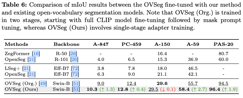 论文的方法在微调后实现了零样本推理,在图像分类任务之外扩展了其适用性范围,适用于广泛的应用领域。为了展示其多功能性,论文提出了一个新的用于稳健微调的评估基准,包括五个任务:三种情景下的图像分类任务、跨模态检索和开放词汇分割。大量实验证明,与现有的稳健微调和PEFT方法相比,论文的方法在分布转移条件下表现出卓越性能,同时使用的参数更少。