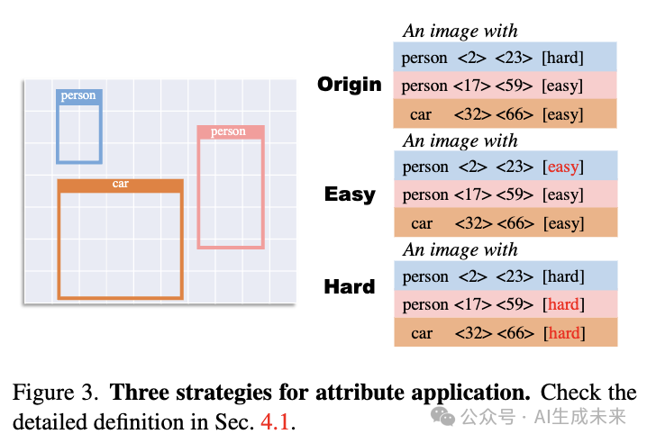 此外, 与现有方法 使用标题作为文本提示相比, 我们设计了一个有效的文本提示, 配备了多对Perception-Aware属性。具体而言, 提示是 “一张带有{目标}的图像” , 其中目标是 是真实边界框的数量。这个全面的属性集和有效的提示旨在概括对每个目标特征的更全面理解, 可能为感知提供更丰富的描述。