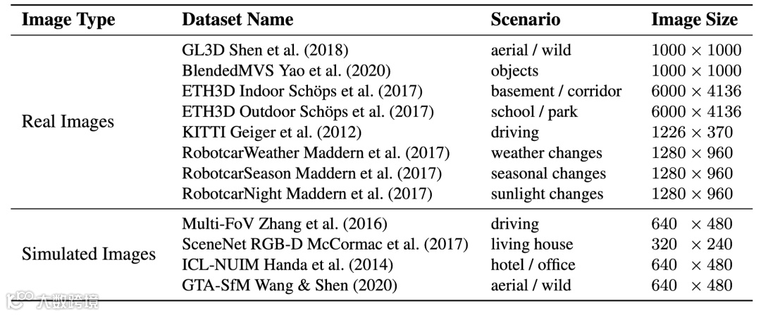 为了能充分衡量一个匹配模型的泛化性能,作者提出了第一个Zero-shot Evaluation Benchmark (ZEB)。如图3所示,ZEB由12个涵盖各种场景、天气和相机模型的公开数据集组成,大约包含4.6万对测试图片。远多于现有方法普遍采用的,由MegaDepth和ScanNet组成,仅包含3000对图像的测试集。