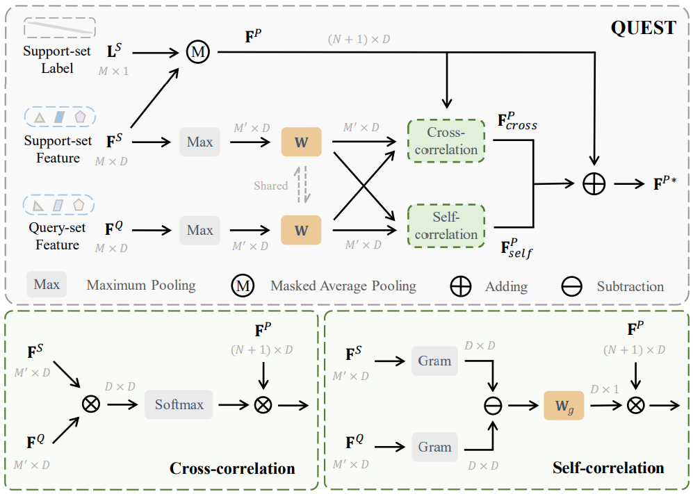 然后 QUEST 通过互相关来调整类别原型,