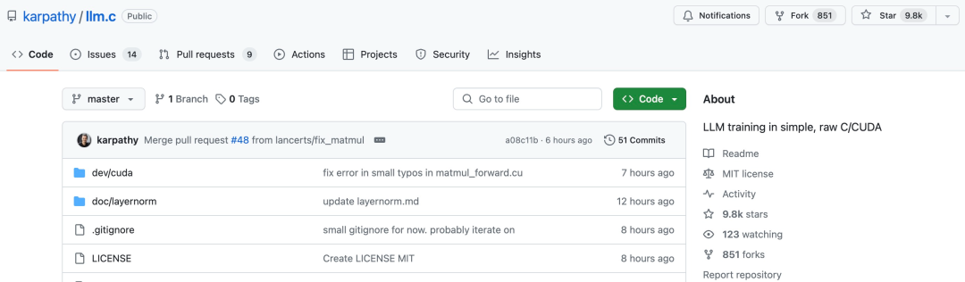 项目链接:https://github.com/karpathy/llm.c