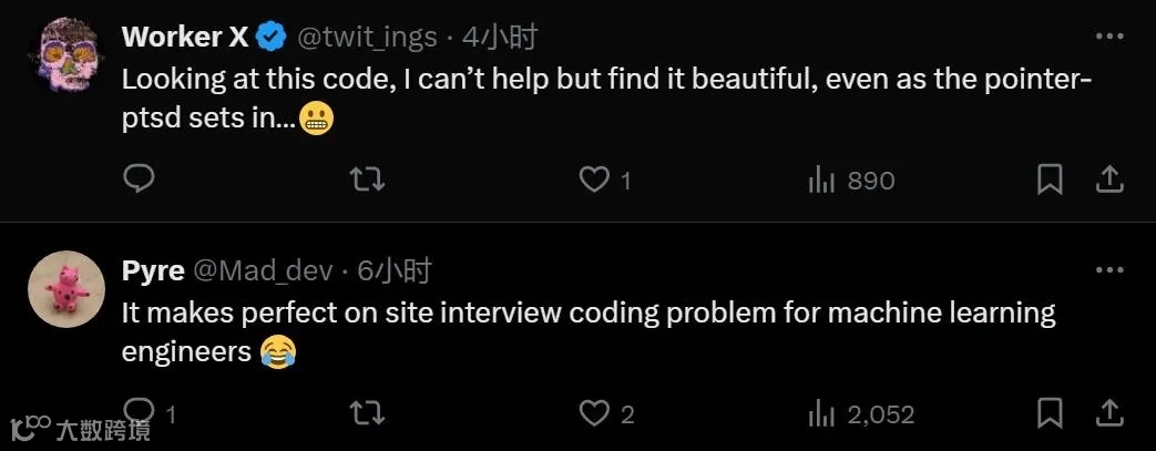 项目的 Star 量不到七个小时就冲上了 2000,目前已经接近一万 Star。很多网友惊呼太强了:「即使顶着指针 ptsd,我也能感受到这些代码的美。」