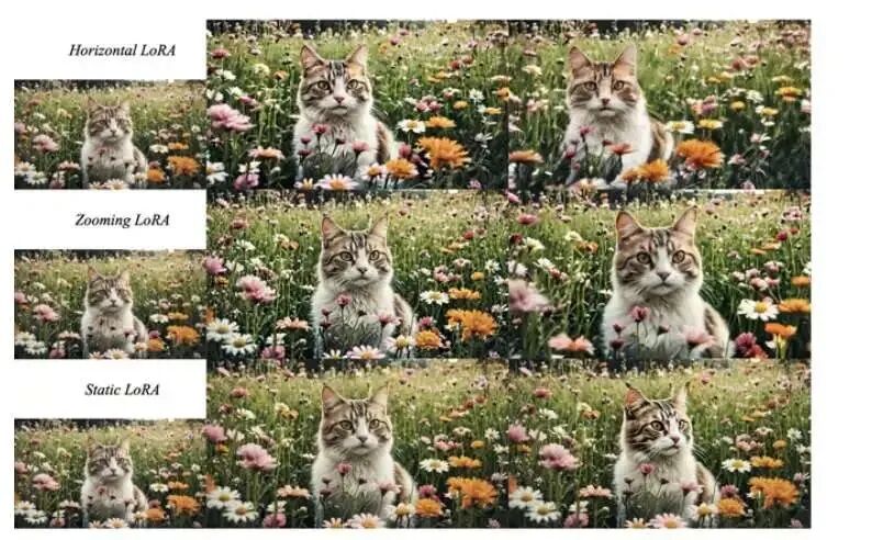 参考之前 AnimateDiff 工作,SVD 也成功训练了相机运动 LoRA,使得图生视频模型只会生成平移、缩放等某一种特定相机运动的视频。