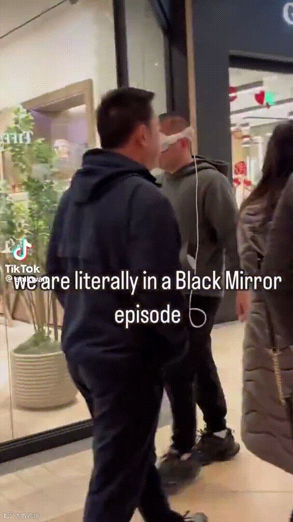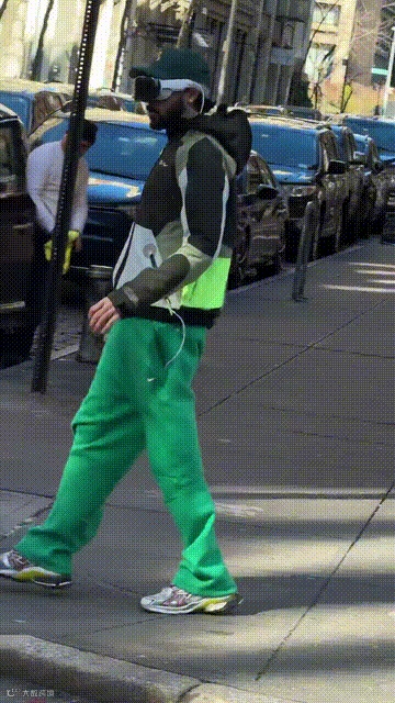 看看这位来自未来的人,正戴着苹果头显过马路,不仅随时观测左右两边路况,双手还在空中各种比划操作。