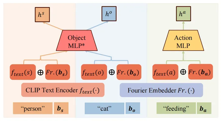 对于交互动作token,考虑到交互动作在语义上应该与主体和客体分开,因而作者训练了一个单独的多层感知机进行处理: