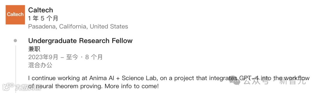 与此同时,他还是加州理工学院计算与数学科学系(CMS)的SURF研究员,由Anima Anandkumar教授和Kaiyu Yang博士共同指导。