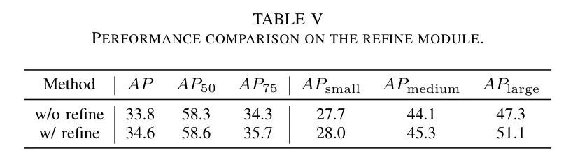 表6的结果表明,这种方法在所有评估指标上均一致地提升,验证了解耦 Heatmap 的有效性。值得注意的是, 进一步提升了0.4%,这表明这种技术特别适用于小型物体的检测。