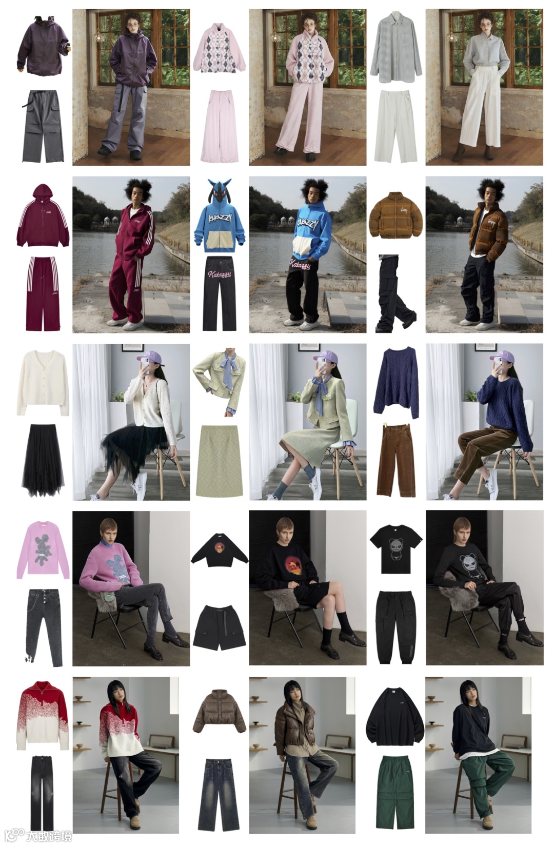 Wear-Any-Way使用户能够同时提供上衣和下衣,并在一次推理中获得整套搭配试穿结果。和单件试穿一样,我们对服饰输入形式和目标人像的场景和姿态都有非常强的泛化能力。