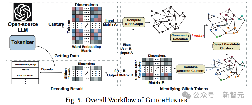 更新与迭代:选定包含故障词元的群组后,这些词元会被整合到一个更新的词元嵌入图中。随后,GlitchHunter会继续进行聚类和检测,直到词元嵌入图不再经历任何更新,即没有新的故障词元被发现。