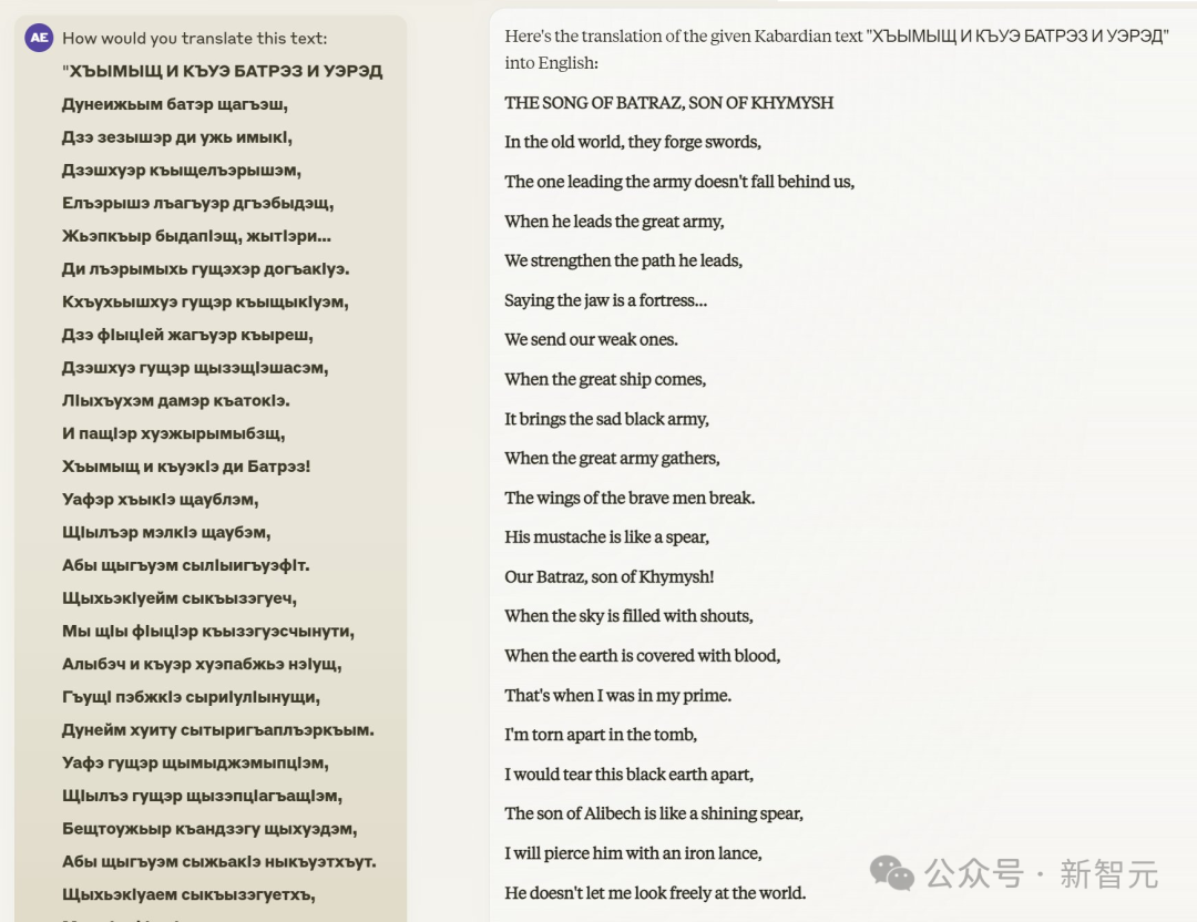 相比之下,我在 GPT-4 上尝试了相同的测试,但它完全失败了。连最简单的句子都拒绝翻译,更不用说掌握语法的复杂性了。我之前也尝试过在类似的数据集上微调 GPT-3.5,结果只是噪音。 我不知道Anthropic对这个模型做了什么,但它与其他任何模型都完全不同。 许多人对它在综合基准测试中的领先地位持怀疑态度,但我看到的结果是惊人的,这个基准测试在训练数据集中的可能性为0%! 这本来像是多年以后的事情,今天却发生了。