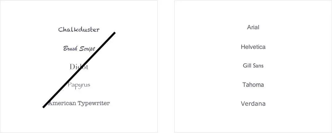 有些时候,排版可以提升视觉效果,增加额外的情感和洞察力。但数据可视化不包括在内。坚持使用简单的无衬线字体(通常是Excel等程序中的默认字体)。无衬线字体即是那些文字边缘没有小脚的字体。