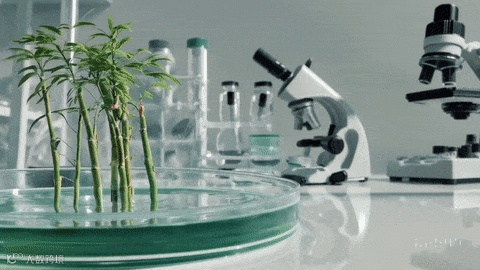 在一个培养皿中,生长着一片竹林,其中小熊猫们在欢快地奔跑。