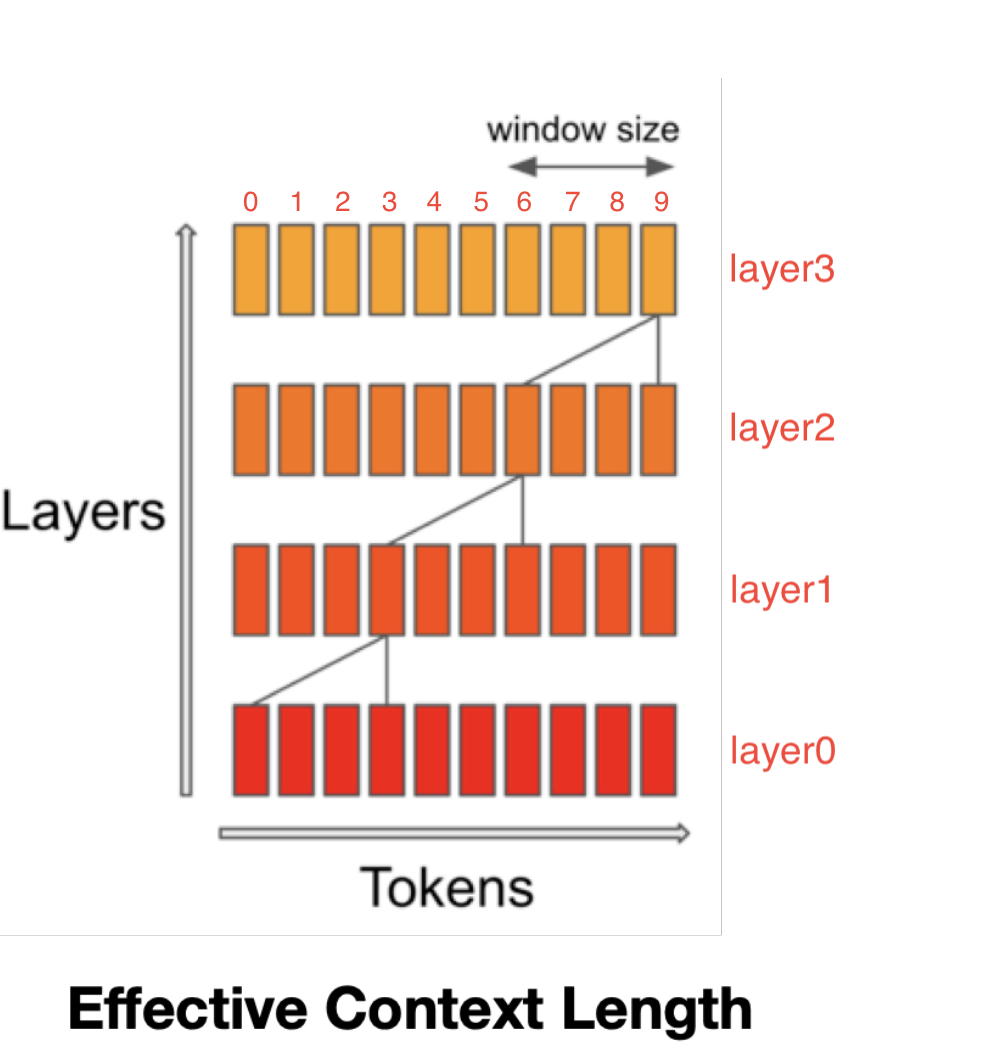 所以,Silding Window Attention并非完全不利用窗口外的token信息,而是随着模型层数的增加,间接性地利用起窗口外的tokens。