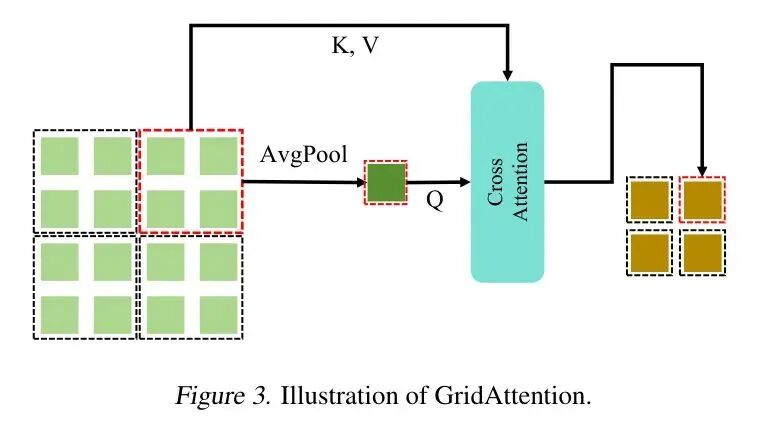 类似于标准的多头自注意力机制, GridAttention同样融合了残差连接。为了对齐标记的形状,作者使用了带有平均池化的残差连接。完整的GridAttention如公式1所示。