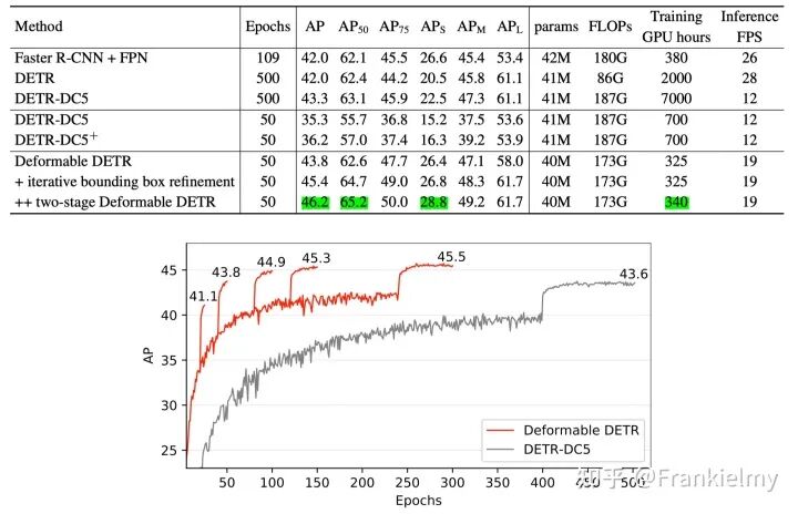 Deformable DETR的提出可以帮助探索更多端到端目标检测的探索。提出了bbox迭代微调策略和两阶段方法,其中iterative bounding box refinement类似Cascade R-CNN方法,two stage类似RPN。
