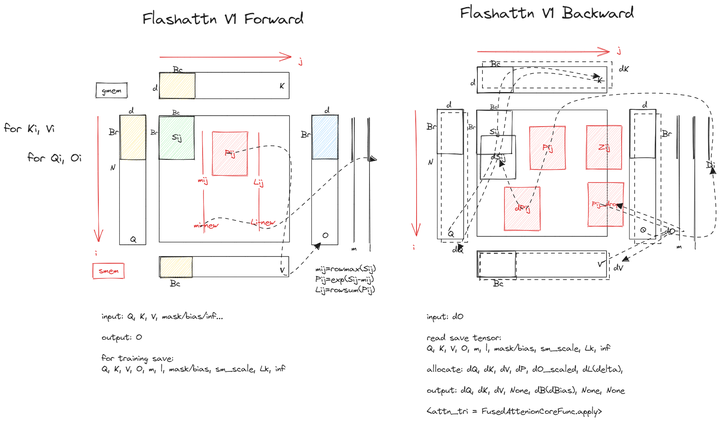 最近摸了一下FlashAttention的CUTLASS实现(https//github.com/Dao-AILab/flash-attention/blob/main/csrc/flash_attn/src/flash_bwd_kernel.h)和Triton实现(https//github.com/openai/triton/blob/main/python/triton/ops/flash_attention.py),之前做过FlashAttention V1和V2算法下,这两种框架最终的Kernel Perf benchmark(A100 & H100)所以对V1和V2的差异很好奇,本文是一个简单的学习总结,主要从计算的角度总结FlashAttention怎么做到save memory & perf speedup的,讲一些其他文章提的比较少的点,不提供等效计算变换的公式证明(这部分知乎其他大佬写的非常详细清晰了)。