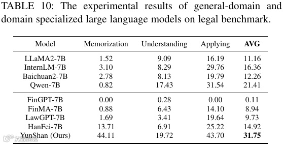 表 8:不同模型在法律 LawBench 数据集上的测评结果