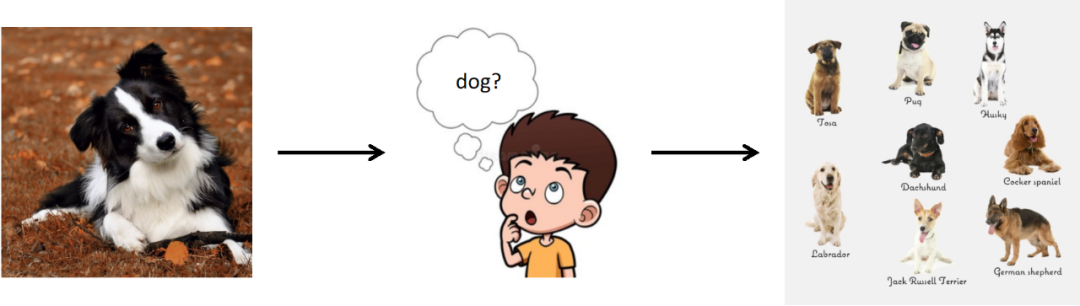 为了更有效地进行数据集扩增,该工作探究了人类的联想学习:给定一个物体,人类可以利用他们累积的先验知识轻易地想象物体的不同变体,例如下图狗子在不同种类、不同颜色、不同形状或不同背景下的变体。这一想象学习的过程对于数据集扩增非常有启发性,因为它不仅是简单地扰动图片中动物体的外观,而是应用丰富的先验知识来创造具有新信息量的变体图片。
