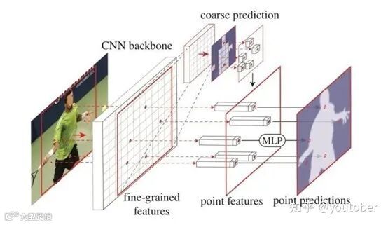 PointRend借鉴了Render的思想,在尺度方式变化时由于采样的方式(不是连续坐标的设定吗),使得锯齿现象不会很明显。因此PointRend是利用一种非均匀采样的方式来确定在分辨率提高的情况下,如何确定边界上的点,并对这些点归属进行判别。 本质上其实是一个新型上采样方法,针对物体边缘的图像分割进行优化,使其在难以分割的物体边缘部分有更好的表现。
