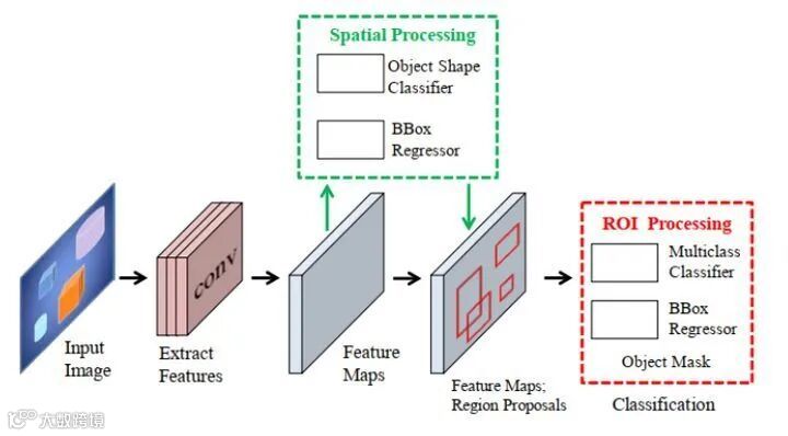 主要有四种:掩模建议分类法、先检测再分割法、标记像素后聚类法和密集滑动窗口法