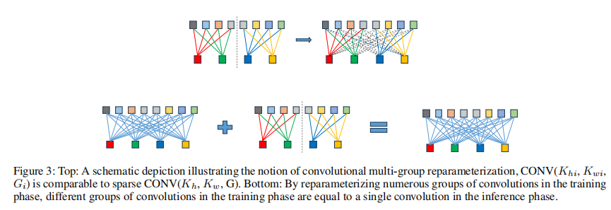 提出卷积多组重参数化,在训练阶段融合不同子通道的空间信息,在推理阶段融合成一个卷积,从而在推理速度不变的情况下提高模型的精度。