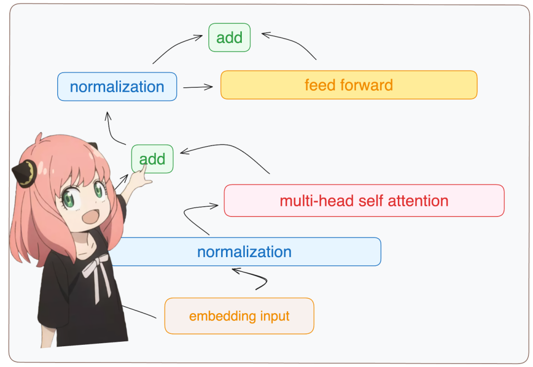 final_embedding = token_embeddings_unnormalizedfor layer in range (n_layers):qkv_attention_store = []layer_embedding_norm = rms_norm (final_embedding, model [f"layers.{layer}.attention_norm.weight"])q_layer = model [f"layers.{layer}.attention.wq.weight"]q_layer = q_layer.view (n_heads, q_layer.shape [0] //n_heads, dim)k_layer = model [f"layers.{layer}.attention.wk.weight"]k_layer = k_layer.view (n_kv_heads, k_layer.shape [0] //n_kv_heads, dim)v_layer = model [f"layers.{layer}.attention.wv.weight"]v_layer = v_layer.view (n_kv_heads, v_layer.shape [0] //n_kv_heads, dim)w_layer = model [f"layers.{layer}.attention.wo.weight"]for head in range (n_heads):q_layer_head = q_layer [head]k_layer_head = k_layer [head//4]v_layer_head = v_layer [head//4]q_per_token = torch.matmul (layer_embedding_norm, q_layer_head.T)k_per_token = torch.matmul (layer_embedding_norm, k_layer_head.T)v_per_token = torch.matmul (layer_embedding_norm, v_layer_head.T)q_per_token_split_into_pairs = q_per_token.float ().view (q_per_token.shape [0], -1, 2)q_per_token_as_complex_numbers = torch.view_as_complex (q_per_token_split_into_pairs)q_per_token_split_into_pairs_rotated = torch.view_as_real (q_per_token_as_complex_numbers * freqs_cis)q_per_token_rotated = q_per_token_split_into_pairs_rotated.view (q_per_token.shape)k_per_token_split_into_pairs = k_per_token.float ().view (k_per_token.shape [0], -1, 2)k_per_token_as_complex_numbers = torch.view_as_complex (k_per_token_split_into_pairs)k_per_token_split_into_pairs_rotated = torch.view_as_real (k_per_token_as_complex_numbers * freqs_cis)k_per_token_rotated = k_per_token_split_into_pairs_rotated.view (k_per_token.shape)qk_per_token = torch.matmul (q_per_token_rotated, k_per_token_rotated.T)/(128)**0.5mask = torch.full ((len (token_embeddings_unnormalized), len (token_embeddings_unnormalized)), float ("-inf"))mask = torch.triu (mask, diagonal=1)qk_per_token_after_masking = qk_per_token + maskqk_per_token_after_masking_after_softmax = torch.nn.functional.softmax (qk_per_token_after_masking, dim=1).to (torch.bfloat16)qkv_attention = torch.matmul (qk_per_token_after_masking_after_softmax, v_per_token)(qkv_attention)stacked_qkv_attention = torch.cat (qkv_attention_store, dim=-1)w_layer = model [f"layers.{layer}.attention.wo.weight"]embedding_delta = torch.matmul (stacked_qkv_attention, w_layer.T)embedding_after_edit = final_embedding + embedding_deltaembedding_after_edit_normalized = rms_norm (embedding_after_edit, model [f"layers.{layer}.ffn_norm.weight"])w1 = model [f"layers.{layer}.feed_forward.w1.weight"]w2 = model [f"layers.{layer}.feed_forward.w2.weight"]w3 = model [f"layers.{layer}.feed_forward.w3.weight"]output_after_feedforward = torch.matmul (torch.functional.F.silu (torch.matmul (embedding_after_edit_normalized, w1.T)) * torch.matmul (embedding_after_edit_normalized, w3.T), w2.T)final_embedding = embedding_after_edit+output_after_feedforward