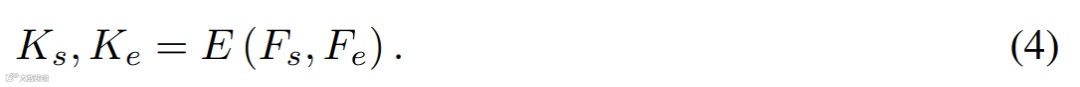 使用函数 E,给定的起始帧 F_s 和结束帧 F_e 被压缩成图像语义空间向量 K_s 和 K_e。