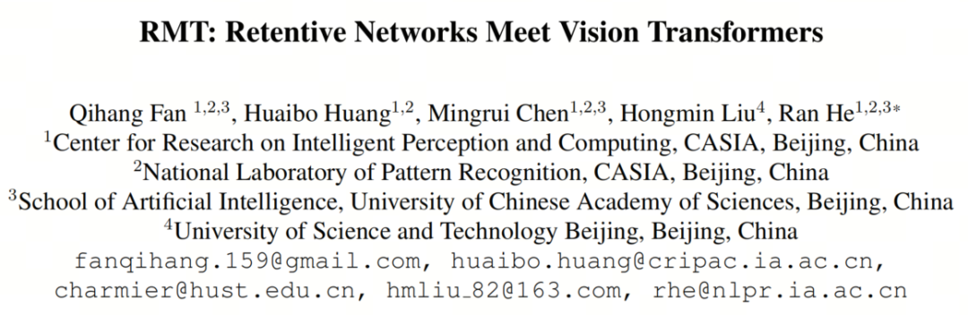 1.RMT: Retentive Networks Meet Vision Transformers.