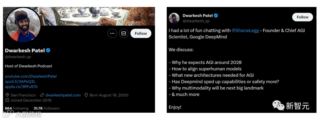 10月26日,在X上有三万订阅的Dwarkesh Podcast(矮人播客)主持人Dwarkesh Patel采访了谷歌DeepMind的创始人兼首席AGI科学家Shane Legg。