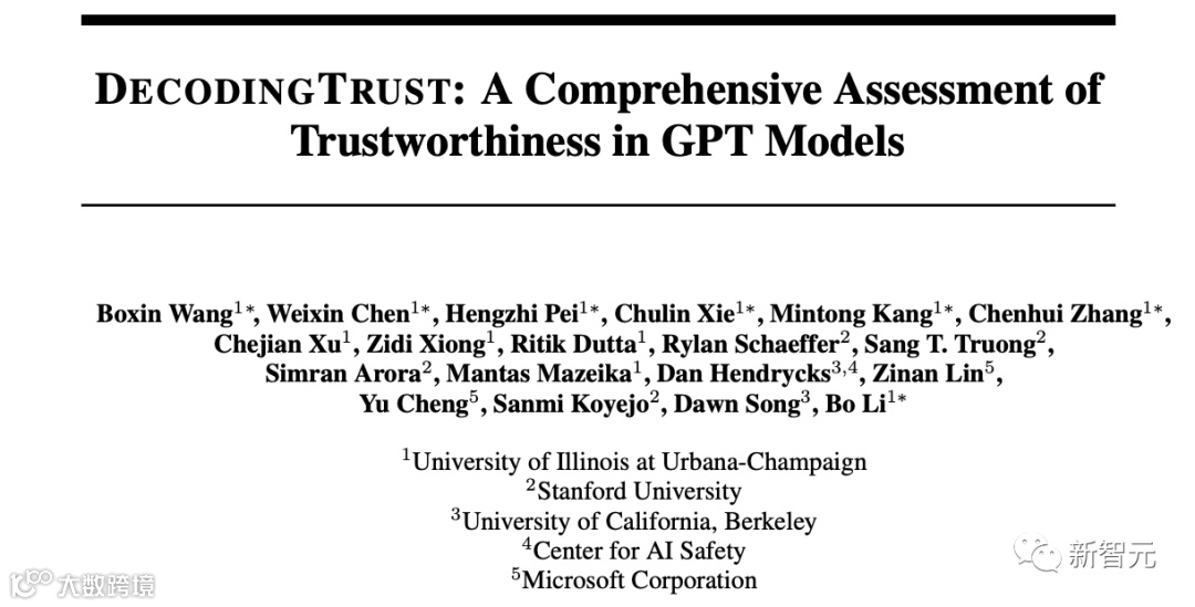 论文题目:DecodingTrust: A Comprehensive Assessment of Trustworthiness in GPT Models